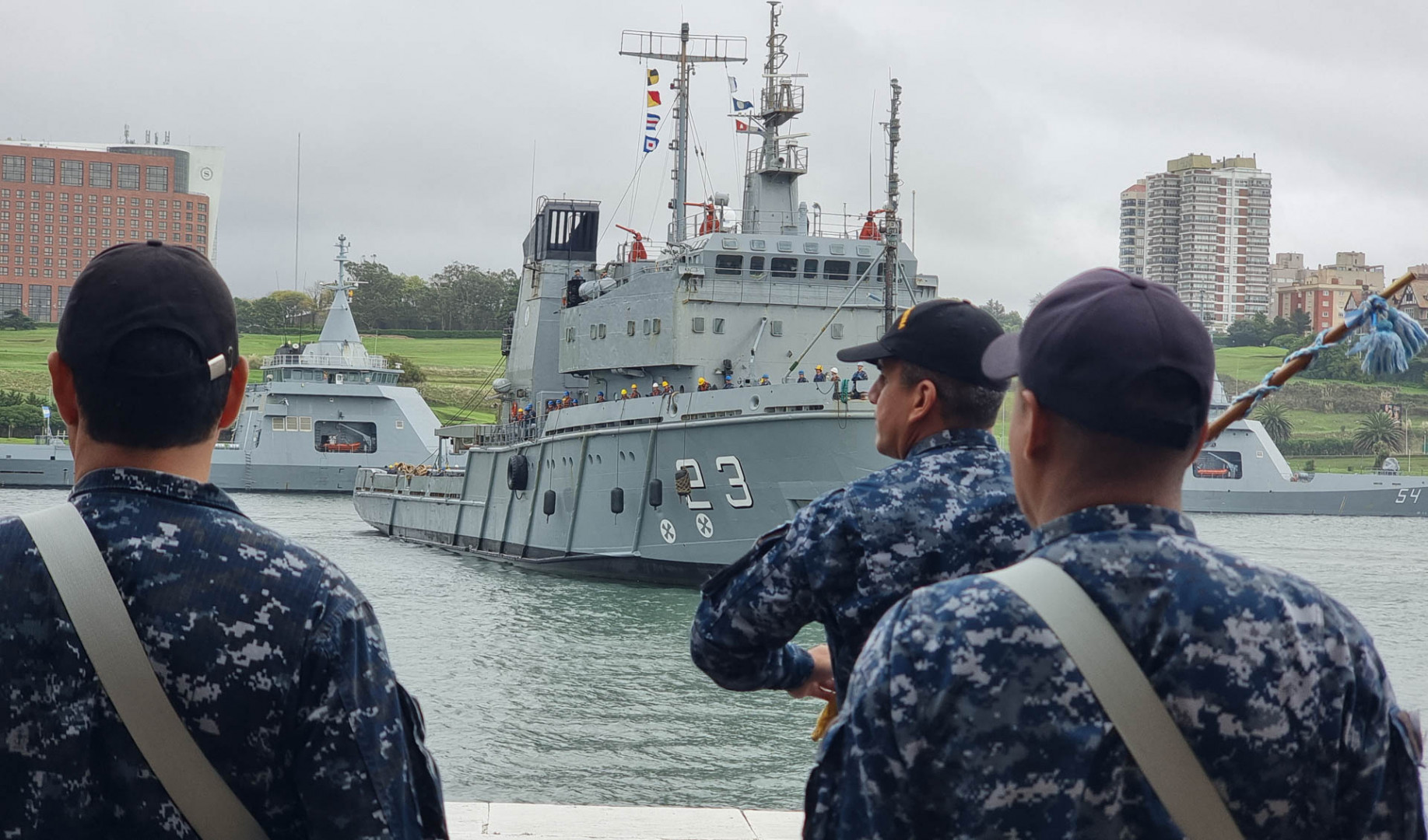 La ceremonia de arribo contó con la presencia del Comandante del Área Naval Atlántica y Jefe de la Base Naval Mar del Plata, Fernando Enrique Pérez Kühn; el Comandante de la División Patrullado Marítimo, Roberto Orlando Lovera, jefes y titulares de distintos destinos con asiento en la base naval.