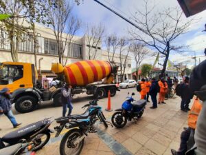 Mucho movimiento de camiones mixel (hormigoneros) de obreros afiliados de la construcción que se bajabana votar.