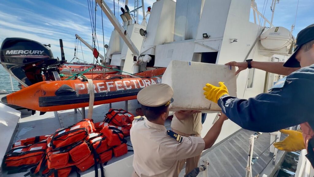 Efectivos de la Autoridad Marítima Nacional, acompañados por especialistas de la Fundación Temaikén, trasladaron al animal a bordo del Guardacostas GC – 72 “Buenos Aires” unas 2.5 millas náuticas mar adentro (cerca de 5 kilómetros) y allí se realizaron las acciones necesarias para regresarlo a su entorno original.