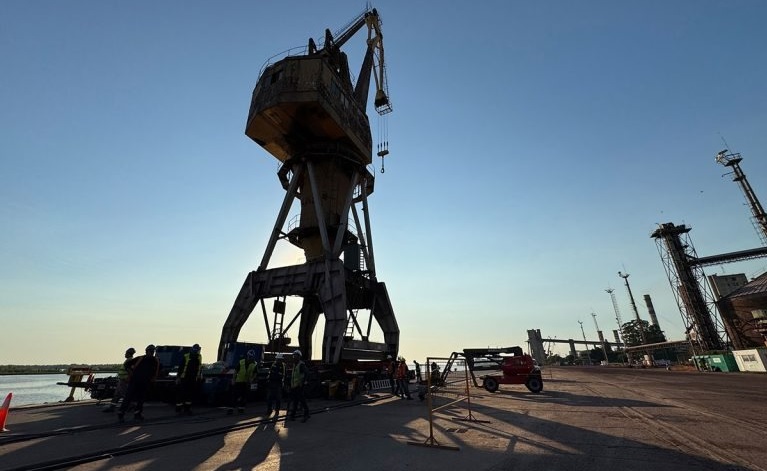El 25 de diciembre finalizaron los trabajos de la puesta en valor de la grúa Ganz, una pieza histórica que forma parte de la identidad del Puerto San Nicolás.